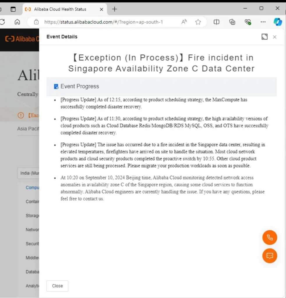 Kejadian ini, yang bermula pada pukul 10.20 waktu Beijing, menyebabkan gangguan layanan yang signifikan di Zona Ketersediaan Singapura C, mempengaruhi berbagai produk dan layanan cloud yang diandalkan oleh banyak bisnis dan organisasi di wilayah tersebut.